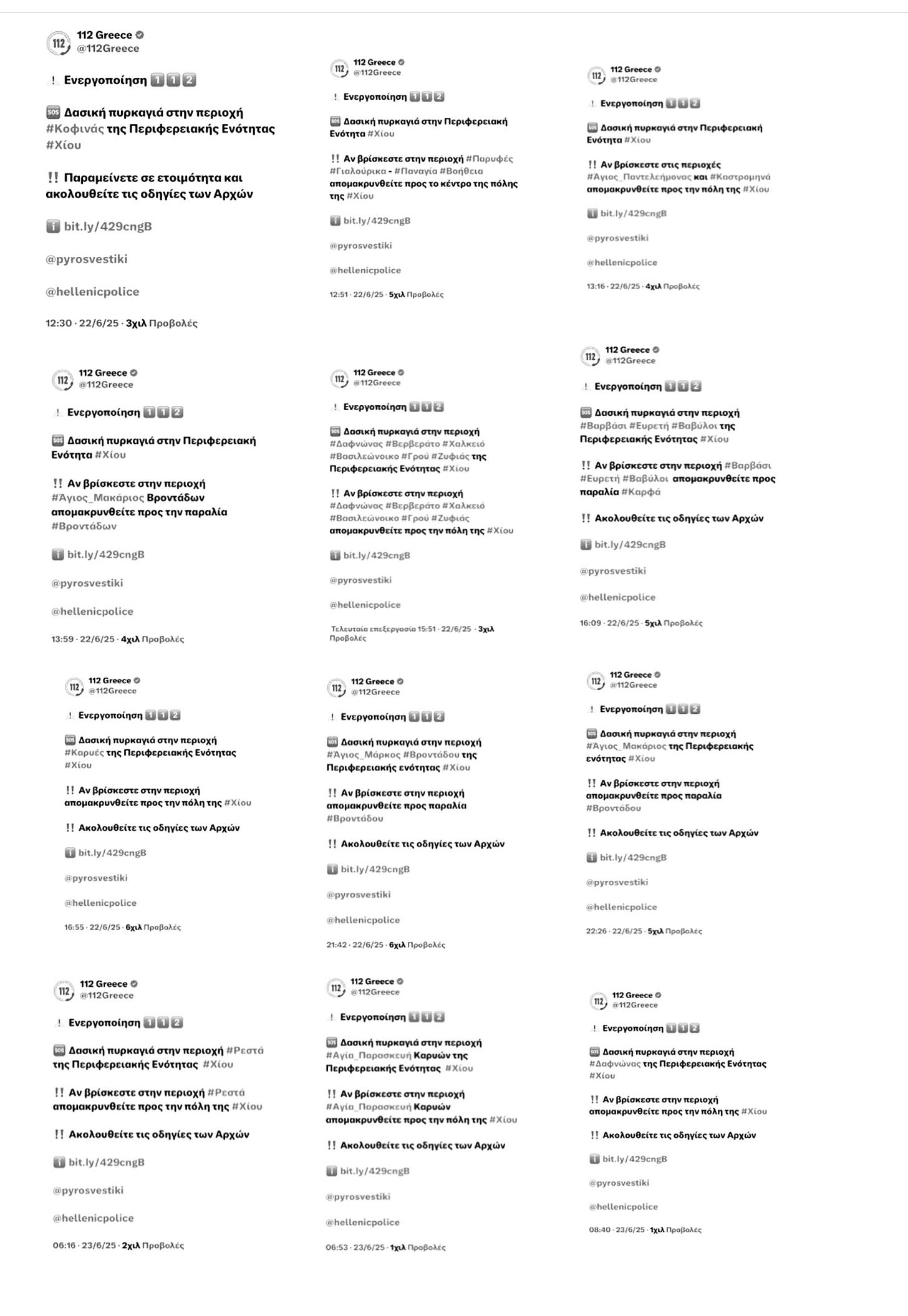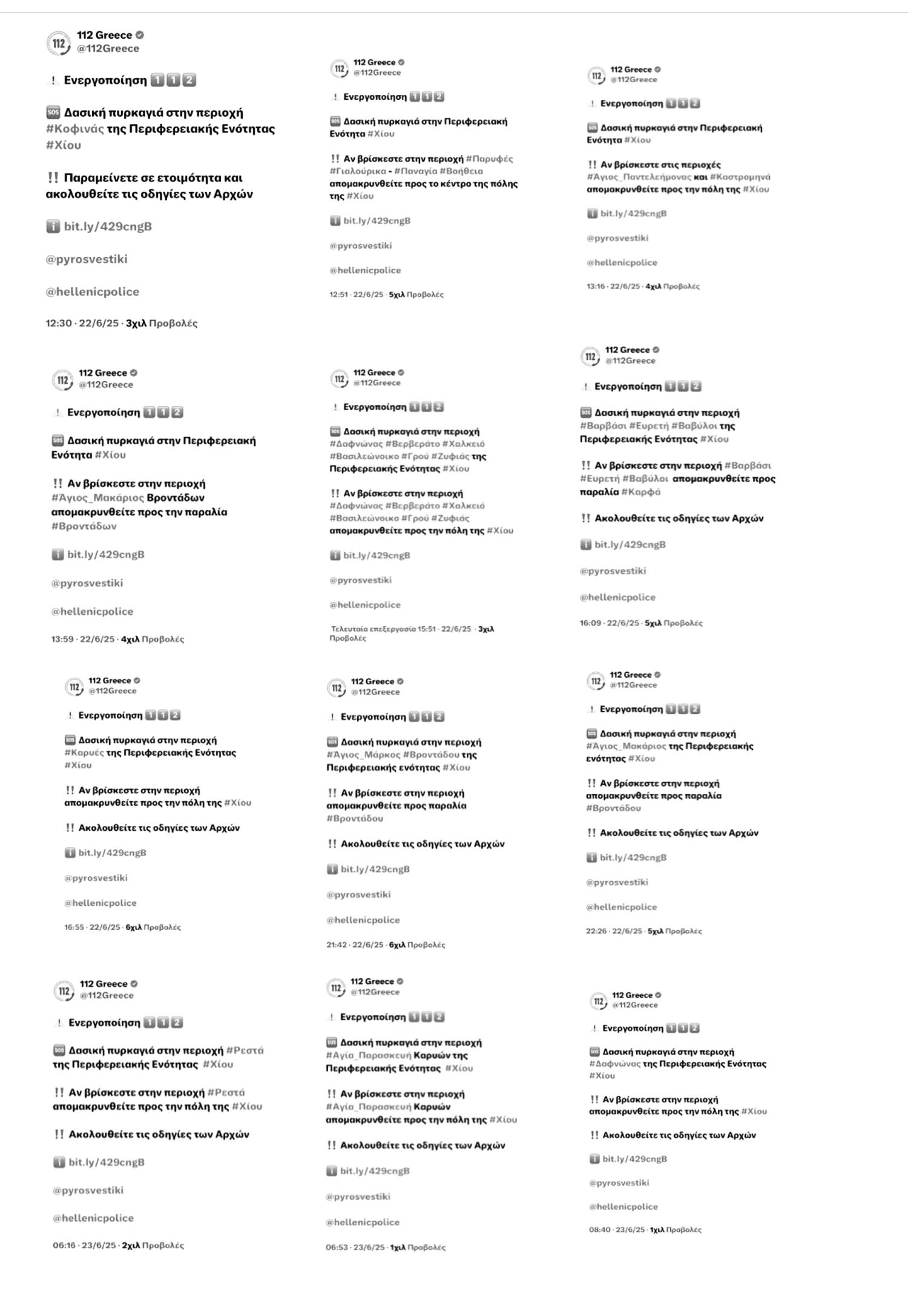 Παράλληλα, σε κατάσταση συναγερμού βρίσκονται και οι κάτοικοι του νησιού. Από χθες το απόγευμα, το 112 έχει αποστείλει επανειλημμένα μηνύματα προς τους πολίτες, καλώντας τους να απομακρυνθούν από επικίνδυνες περιοχές. Σήμερα το πρωί, γύρω στις 06.00, εστάλη προειδοποίηση για εκκένωση της περιοχής Ρεστά προς την πόλη της Χίου, ενώ λίγο αργότερα ζητήθηκε η εκκένωση και της Αγίας Παρασκευής Καρυών. Οι αρχές ζητούν από όλους ψυχραιμία, εγρήγορση και απόλυτη συμμόρφωση με τις οδηγίες.