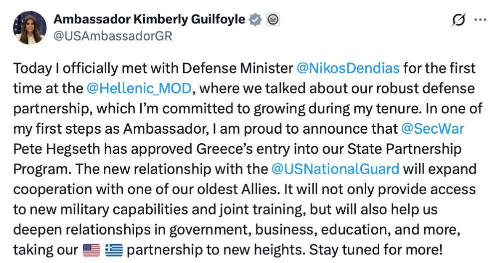 Η ανάρτηση της Αμερικανίδας Πρέσβειρας κ. Γκιλφόιλ: